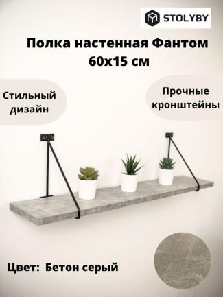 Полка навесная "Фантом" П-1.1Ф Бетон Чикаго светло-серый/черный держатель