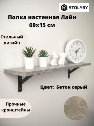 Полка навесная "Лайн" П-1.1Л Бетон Чикаго светло-серый/черный держатель