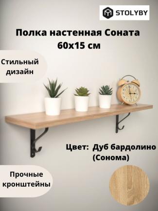 Полка навесная "Соната" П-1.3C Дуб Бардолино натуральный/черный держатель