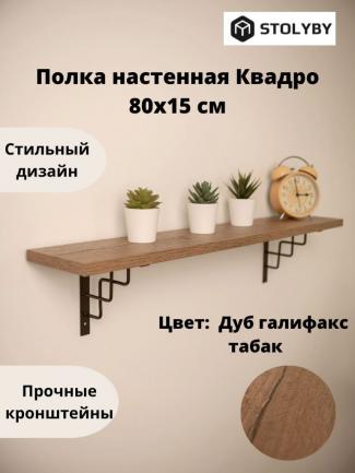 Полка навесная "Квадро" П-1.1Кв Дуб Галифакс табак/черный держатель