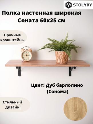 Полка навесная "Соната" П-1.5C Дуб Бардолино натуральный/черный держатель