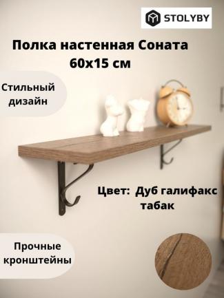 Полка навесная "Соната" П-1.3C Дуб Галифакс табак/черный держатель
