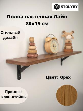 Полка навесная "Лайн" П-1.3Л Орех Дижон натуральный/черный держатель