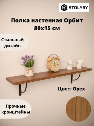 Полка навесная "Орбит" П-1.1Ор Орех Дижон натуральный/черный держатель