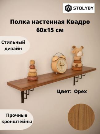 Полка навесная "Квадро" П-1.5Кв Орех Дижон натуральный/черный держатель