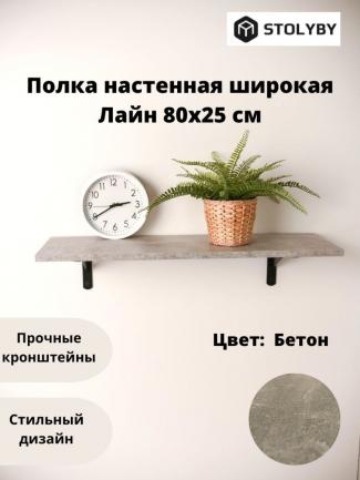 Полка навесная "Лайн" П-1.3Л Бетон Чикаго светло-серый/черный держатель