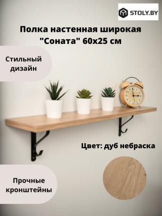 Полка навесная "Соната" П-1.6C Дуб Небраска натуральный/черный держатель