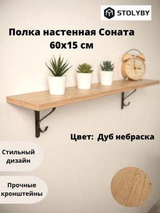 Полка навесная "Соната" П-1.5C Дуб Небраска натуральный/черный держатель