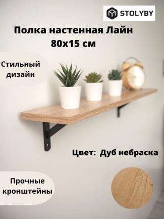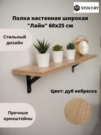 Полка навесная "Лайн" П-1.3Л Дуб Небраска натуральный/черный держатель