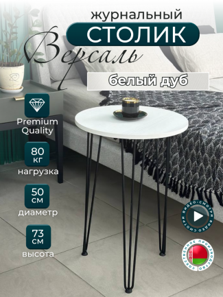 Столик кофейный "Версаль" СтК-1.2.Вс Белый структурный/черная опора 500х730