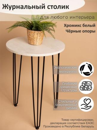 Столик кофейный "Марсель" СтК-1.2.Мс Хромикс белый/черная опора 500х740