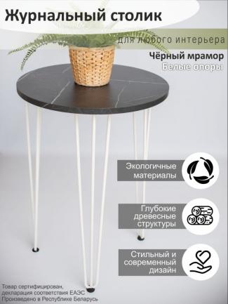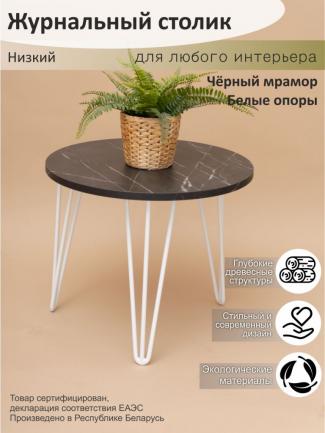 Столик кофейный "Версаль" СК-1.1.Вс Черный мрамор/ белая опора 500х420