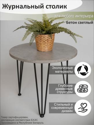 Столик кофейный "Марсель" СтК-1.2.Мс Бетон чикаго светло-серый/черная опора 500х740