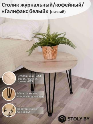 Столик кофейный "Марсель" СтК-1.2.Мс Дуб галифакс белый/черная опора 500х740
