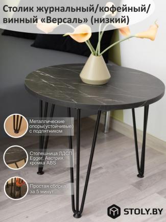Столик кофейный "Версаль" СтК-1.2.Вс Каменьпьетра гриджиа черный/белая опора 500х730