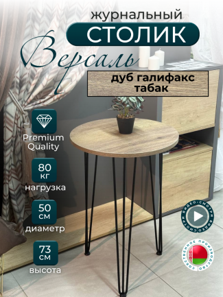 Столик кофейный "Версаль" СтК-1.2.Вс Дуб галифакс натуральный/черная опора 500х730