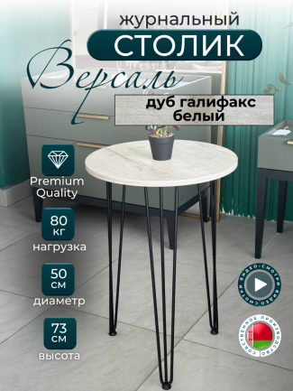 Столик кофейный "Версаль" СтК-1.2.Вс Дуб галифакс белый/черная опора 500х730