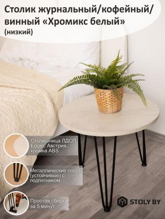 Столик кофейный "Марсель" СтК-1.2.Мс Хромикс белый/черная опора 500х740
