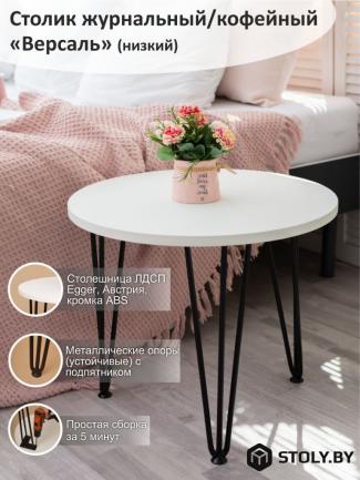 Столик кофейный "Версаль" СтК-1.2.Вс Белый структурный/черная опора 500х730
